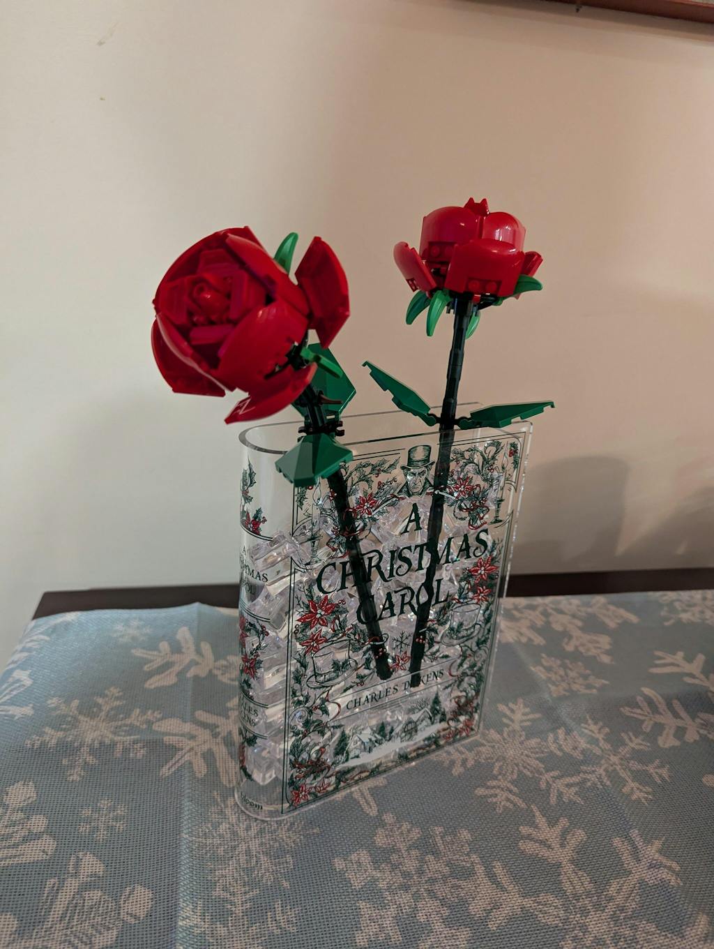 Found these just before Christmas and although I couldn't get it in time (my fault in timing - no shipping issues) these are beautiful and unique. My daughter loves hers and I love my Christmas Carol. Had bought Lego flowers for Christmas and although a bit short for the vase, got some clear crystals and it looks great!