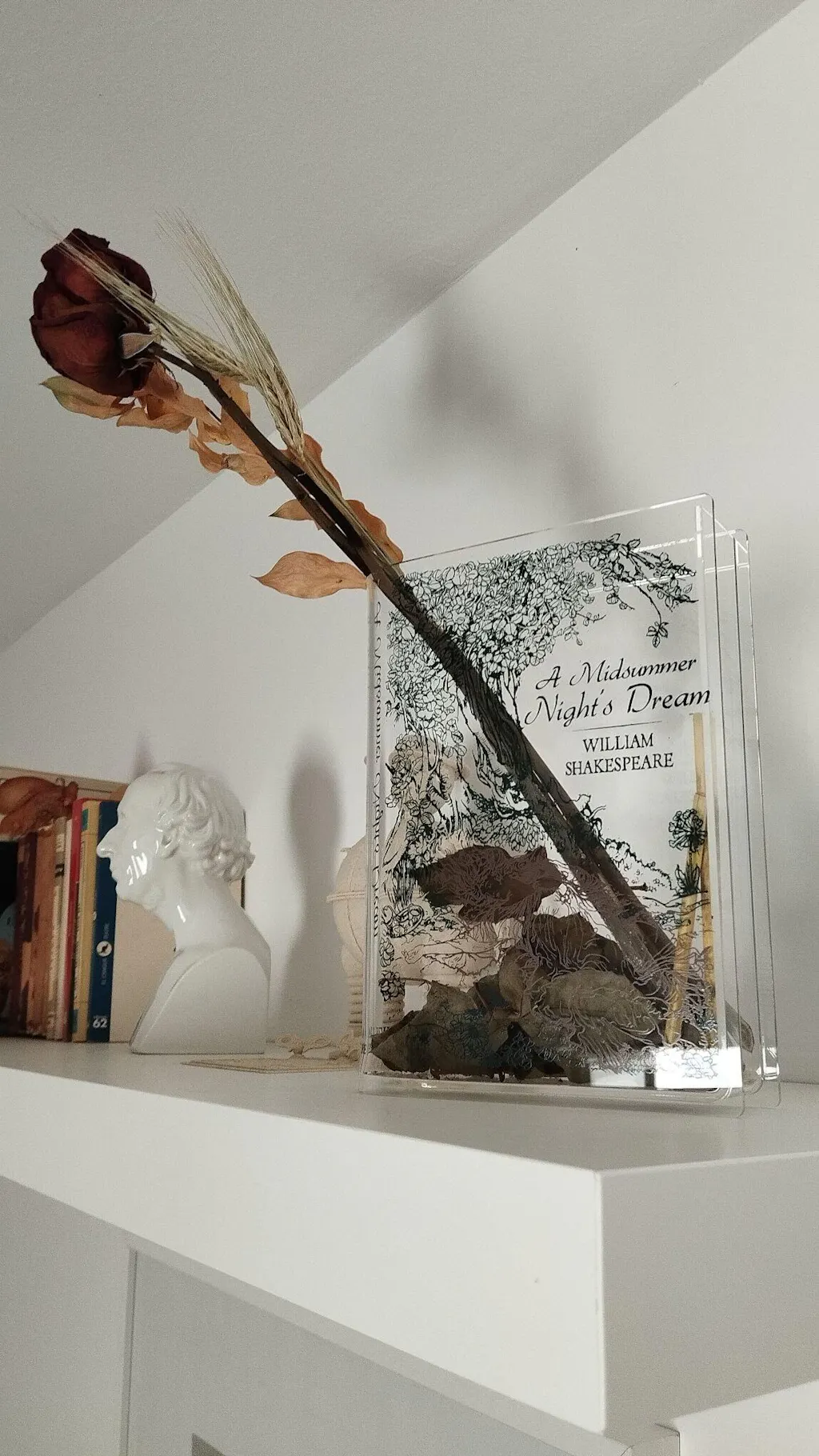 Acrylic book vase inspired by A Midsummer Night's Dream. Unique book decor and literary gift for book lovers. Comes in a premium, Gift-Ready Box.