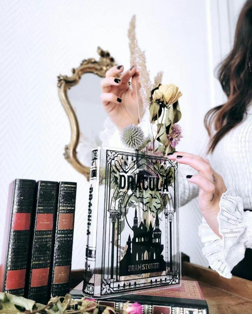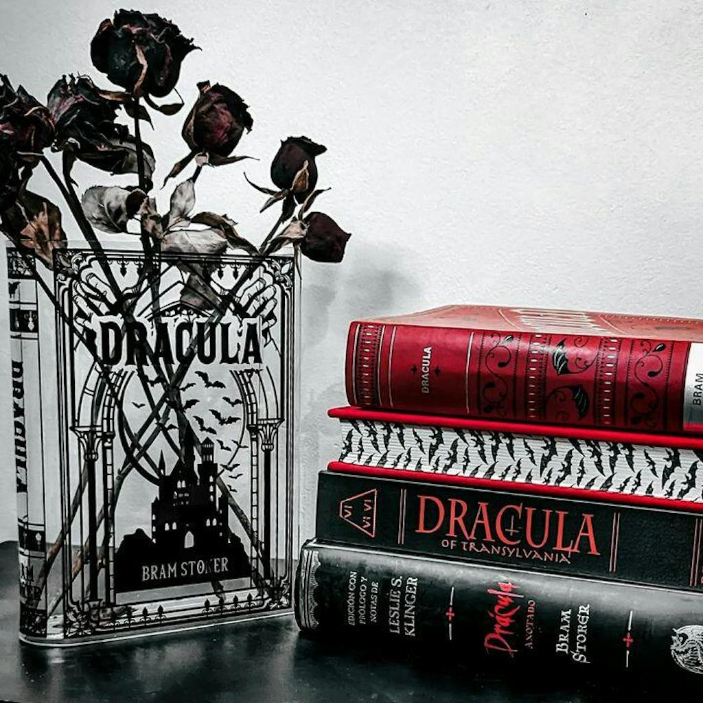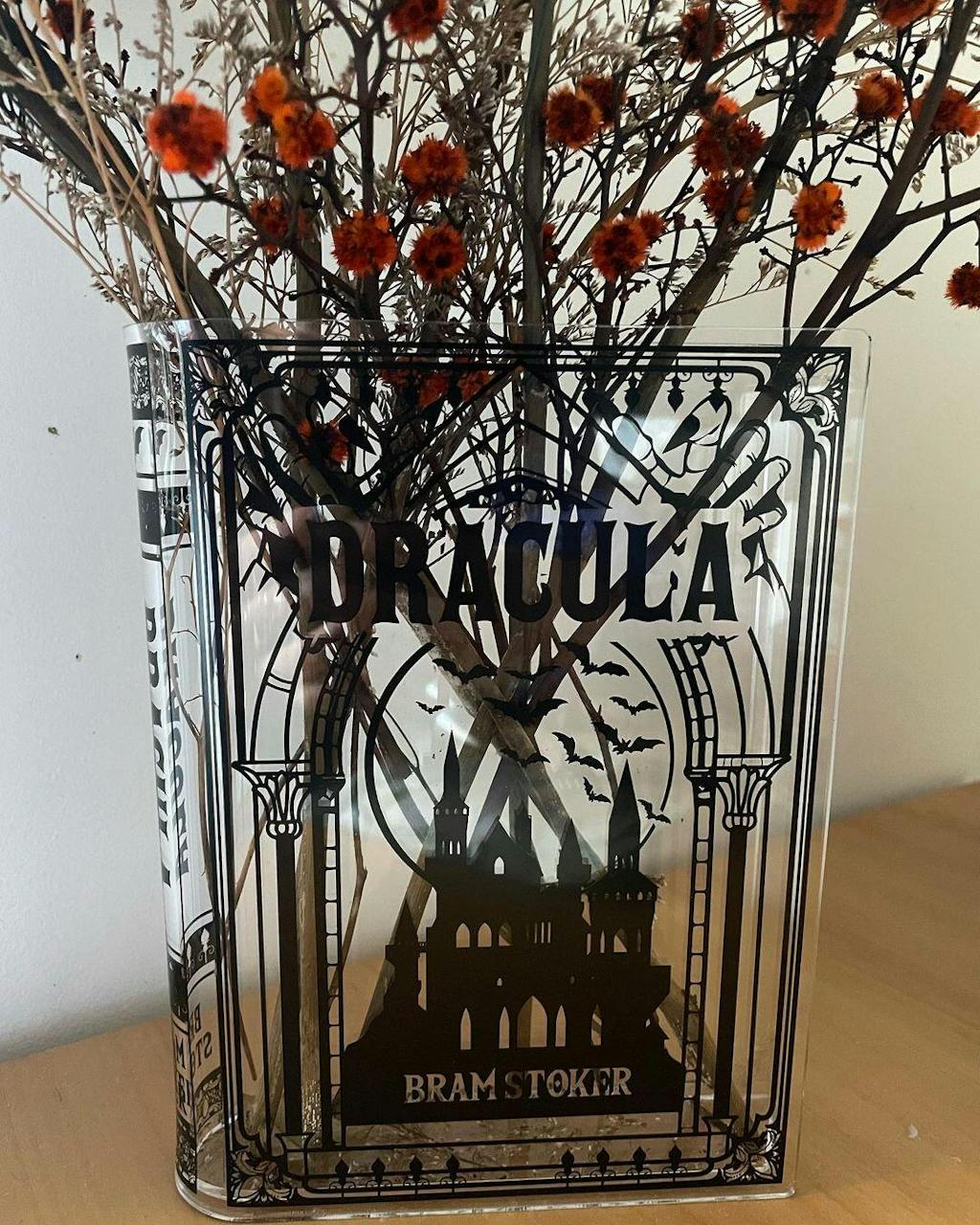 Acrylic book vase inspired by Dracula. Unique book decor and literary gift for book lovers. Comes in a premium, Gift-Ready Box.