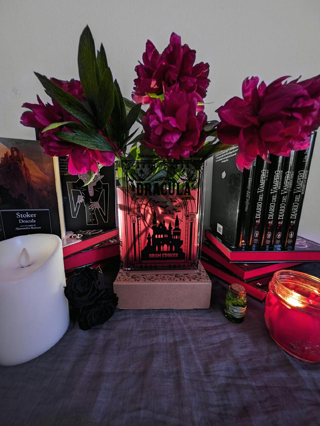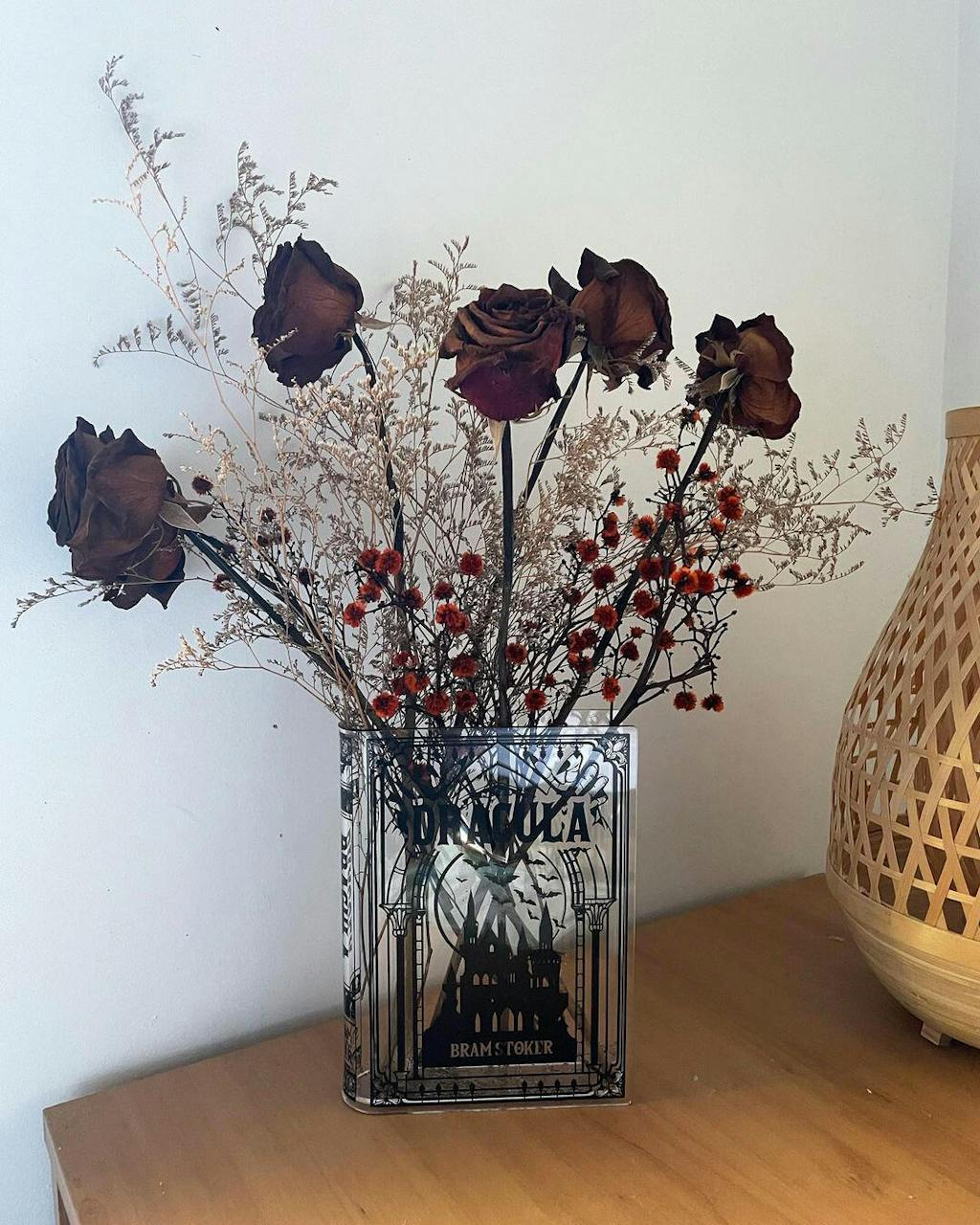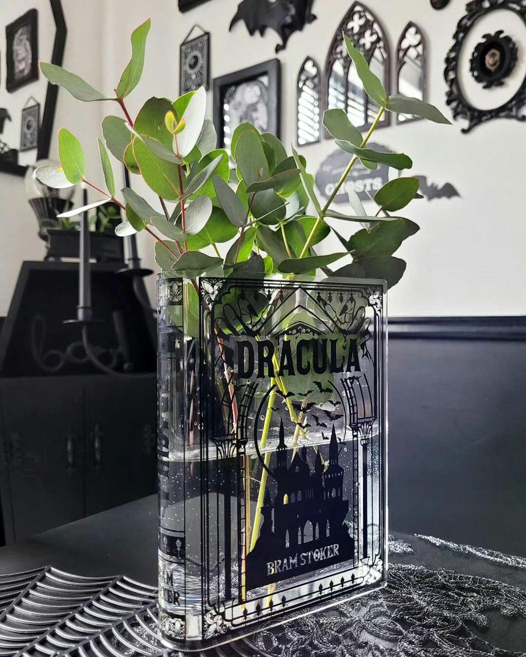 Acrylic book vase inspired by Dracula. Unique book decor and literary gift for book lovers. Comes in a premium, Gift-Ready Box.