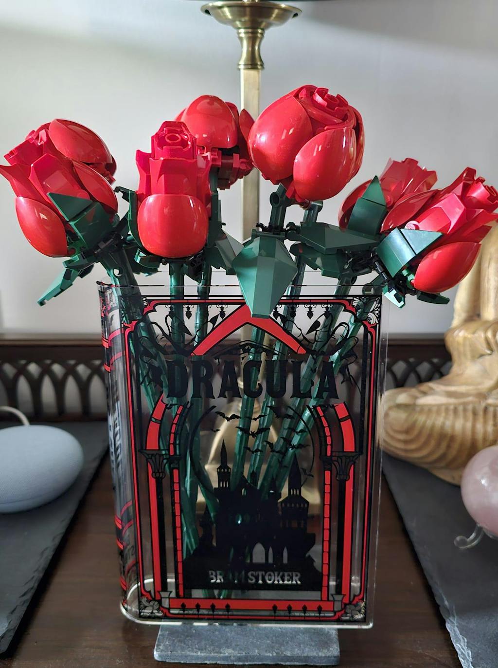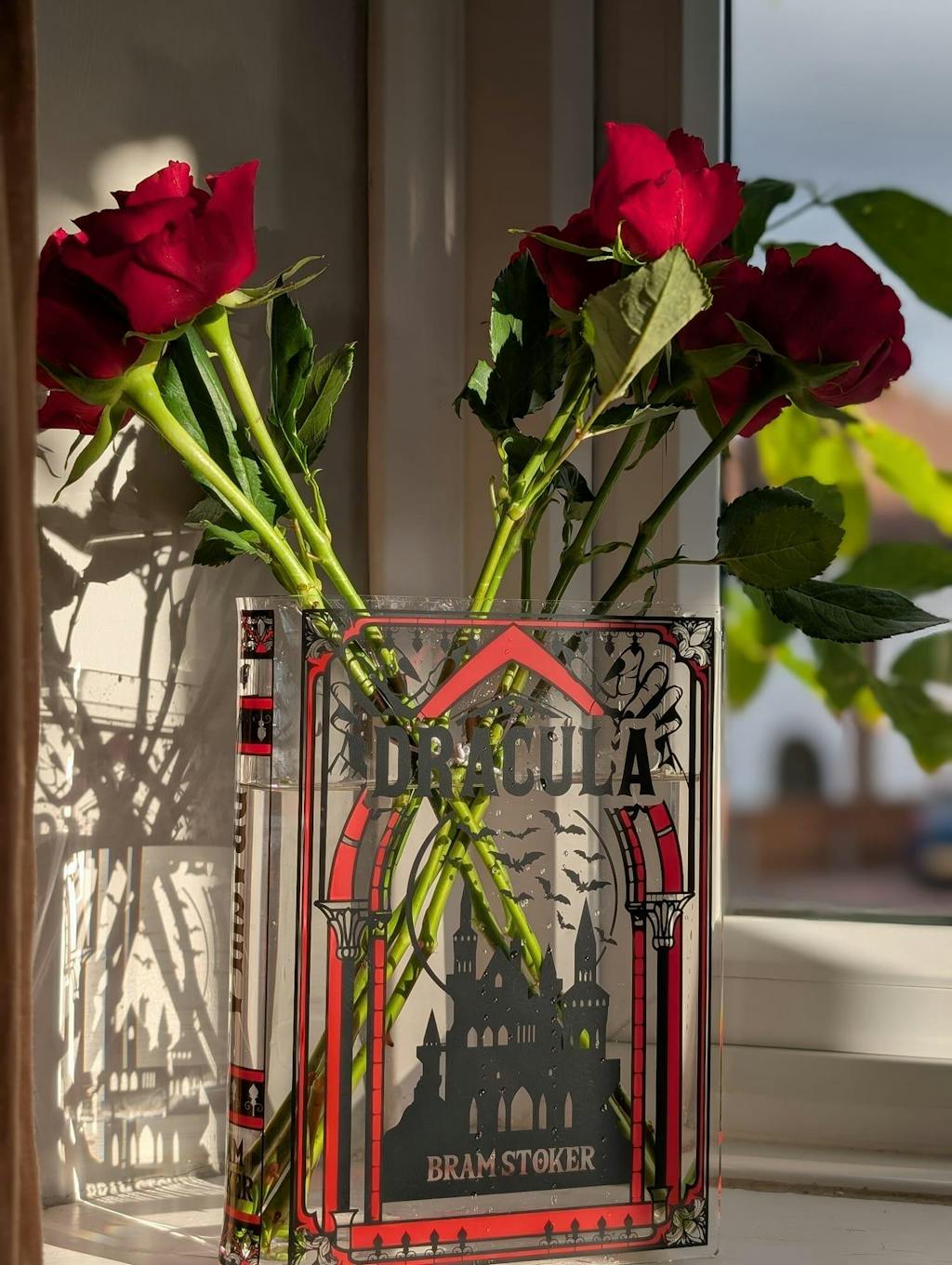 Acrylic book vase inspired by Dracula. Unique book decor and literary gift for book lovers. Comes in a premium, Gift-Ready Box.