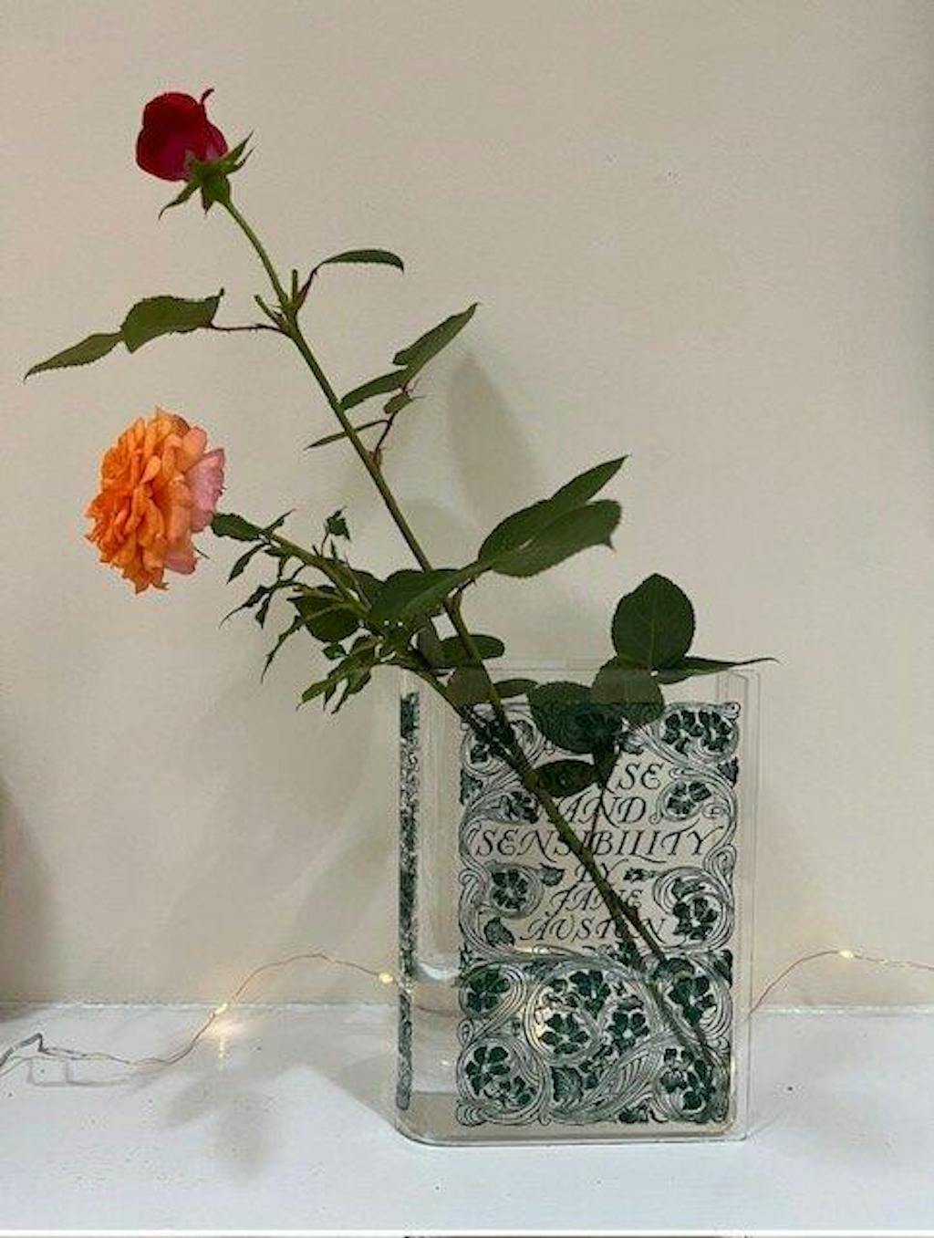 Acrylic book vase inspired by Sense and Sensibility. Unique book decor and literary gift for book lovers. Comes in a premium, Gift-Ready Box.